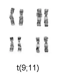 - t(9;11)(p22;q23) з утворенням онкогену C-ALB або MLLT3-MLL