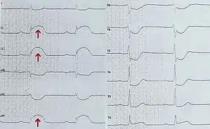 Ознакою найгострішої фази інфаркту міокарда є елевація чи депресія сегменту ST, його косо-висхідне положення (т. зв. дуга Парді, вперше описана американським кардіологом Гарольдом Парді), сплощення/зникнення зубця Т. З третього дня у хворих на трансмуральний інфаркт міокарда утворюється патологічний зубець Q, який може мати вигляд зубця QS (якщо це єдиний негативний зубець шлуночкового комплексу). До ознак перенесеного інфаркту міокарда належать: зниження вольтажу зубців, залишковий патологічний зубець Q, сплощення/зникнення зубця Т. Локалізація ураження визначається за підсумками аналізу ЕКГ-порушень у різних відведеннях.