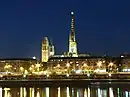 Вежа над средохрестям собору в Байо вночі