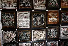 Кесони трохи відрізняються розмірами один від іншого, завдяки чому в розбивці відсутня сухість і шаблон. Всі шістдесят кесонів заповнені декоративними орнаментальними композиціями. В одному з них поміщена дата — 1753 рік, а в іншому — зроблено напис, в якій повідомляється ім'я жертводавця і виконавця — Шандора Ференца і зображений теслярський інструмент — рубанок. [4]