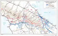 Тим часом британський V корпус намагався прорватися крізь складну пагорбську місцевість. 3–4 вересня, коли канадці вдруге атакували на прибережній рівнині, V корпус завдав потужного удару, щоб збити оборонні позиції на хребті Коріано та дістатися річки Марано.