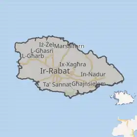 - села — Айн-Мелел, Амар, Арб, Асрі, Бін-Джема, Бірбуба, Вардія, Іль-Касам, Іль-Пергла, Каура, Кбаяр, Керчем, Марсалфорн, Мджар, Муншар, Санат, Сан-Катальд, Сан-Лауренс, Санта-Лучия, Санту-Пітру, Та-Айн-Лукін, Та-Амар, Та-Іда, Тар-Рокон, Та-Точ, Та-Хамет, Та-Ченч, Та-Чині, Та-Шилеп, Та-Шленді.