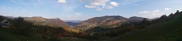 Панорама на гори Маківку і Клива з схилу гори Менчіл