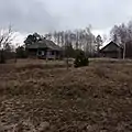 Деревяні хати на початку села