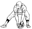 При сильних ролінгах, що летять прямо перед ним, гравець другої бази ловить м'яч в своїй звичайній позі і робить короткий крок лівою ногою, щоб здійснити боковий кидок на першу базу. При сильних ударах вбік, він має зігнутися, з'єднавши п'яти, а в окремих випадках навіть опуститись на коліно, щоб спочатку заблокувати м'яч, оскільки, як правило, завжди залишається час для того, щоб вивести в аут бетера, який біжить на першу базу.