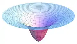 Ця функція потенціалу має гіперболічний перетин; раптове поглиблення в центрі і було причиною появ назви "гравітаційна діра" або колодязь. Чорна діра не матиме цього "закритого" колодязя оскільки її розмір визначається тільки її горизонтом подій.