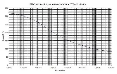 Ця залежність дозволяє вирішити зворотну задачу: визначити обмежену циклічну довговічність деталі (обмежений строк служби в циклах), якщо амплітудне значення σа напружень буде перевищувати границю витривалості.