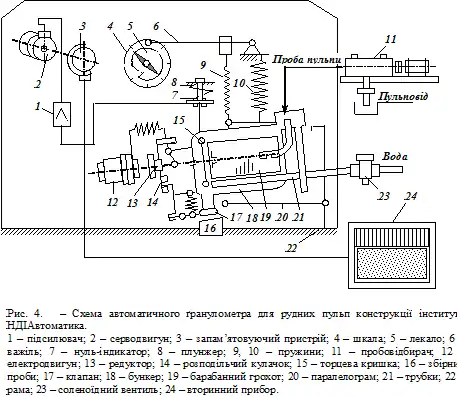 Гранулометр для рудних пульп конструкції інституту НДІАвтоматика (рис. 4) оснований на методі мокрого експрес-аналізу.