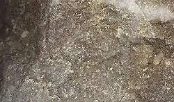 Складається з дрібних зерен. Використовується як будівельний матеріал.