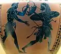 Аполлон і Геракл з дельфійським вівтарем-триногою, чорнофігурний вазопис , гідрія, бл. 520 р. до н.е., Національний археологічний музей Іспанії