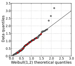 Альтернативно, можна використовувати оцінки медіан порядкової статистики, які можна обчислити на основі оцінки середнього порядку рівномірного розподілу статистики та квантиль функції розподілу; це було запропоновано Філібеном в 1975.