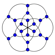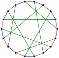 Граф Паппа, розфарбований для виділення різних циклів.