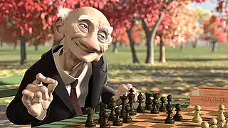 Дійство фільму починається в пустому осінньому парку. Джері, самотній дідок, через відсутність в окрузі гідних суперників, починає грати в шахи сам із собою. Створюється враження, що в шахи грають дві абсолютно різні людини. Джері, який грає білими, лагідний і нерішучий, що носить окуляри, відрізняється від свого «опонента» Джері, що грає чорними, — неухильного і самовпевненого холерика. Щоразу, здійснюючи хід, Джері швидко (наскільки дозволено старому) переміщається на протилежну сторону і змінює образ. Партія все розгорається — Джері без окулярів забирає все більше і більше фігур. Зрештою, на дошці залишається тільки один білий король. Джері-холерик впевнений у своїй перемозі, він відкрито іронізує над своїм нерішучим суперником, який не знає, куди поставити короля. Раптово Джері в окулярах хапається за серце і падає під стіл. Джері без окулярів стурбований, він намагається допомогти супернику, проте сам не може встати, він хапається за пульс, однак все-таки знаходить у собі сили і опускається вниз. У цей час Джері в окулярах непомітно встає і повертає дошку так, що тепер його суперник грає білими (що залишився король). Після цього він, наче нічого й не сталось, продовжує партію. Він на секунду замислюється і, осяяний раптовим рішенням, ставить мат спантеличеному противнику. Як нагороду Джері в окулярах отримує від Джері без окулярів вставну щелепу. Фільм закінчується тим, що сяючий і задоволений собою Джері вставляє щелепу і добродушно посміюється на самоті в осінньому парку.
