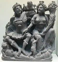 Окрім того у греко-буддистському мистецтві періоду Кушанського царства використовувались такі європейські елементи як херувими з вінками, орнаменти з виноградної лози, кентаври й тритони.