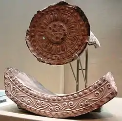 Нарешті, мистецьке натхнення запозичене з грецьких квіткових сувоїв (гірлянд) можна побачити в прикрашення японської храмової черепиці, ледве не єдиного елементу дерев'яної архітектури, що пережив сторіччя. Найкраще це можна побачити на храмовій черепиці з Нари, 7 ст., деякі з яких прямо зображують виноградну лозу та грона. Ці мотиви розвивались у більш символічні зображення, однак в цілому лишаються і по сьогодні у багатьох традиційних японських будівлях.[12]