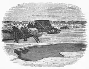 «У багатьох місцях ми знаходили руїни старих ескімоських будівель. <…> Їхні мешканці померли від хвороб чи від голоду, який буває тут у тяжкі зими, цей висновок випливає з того факту, що останні трупи залишилися в домах і їх так і ніхто не виніс. Тепер ескімоси не селяться в таких місцях…»[33]