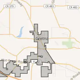 Гретна розташована за координатами 30°35′13″ пн. ш. 84°42′16″ зх. д. (30.586946, -84.704547)[2]. За даними Бюро перепису населення США в 2010 році місто мало площу 15,62 км², з яких 15,60 км² — суходіл та 0,02 км² — водойми. В 2017 році площа становила[3] 19,89 км², з яких 19,83 км² — суходіл та 0,06 км² — водойми.