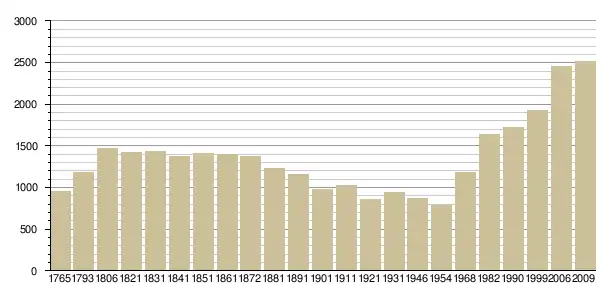 Динаміка населення (Baratier, Duby & Hildesheimer pour l’Ancien Régime ; Insee[3], EHESS[4] pour les chiffres issus des recensements légaux ):