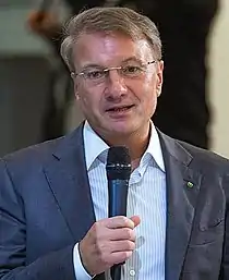 Герман Оскарович Греф (рос. Греф Герман Оскарович, нар. 8 лютого 1964 року, Панфілово, Павлодарська область, Казахська РСР, СРСР) — російський державний діяч, політик німецького походження. Голова Сбербанку Росії і голова правління Сбербанку Росії з 28 листопада 2007 року.