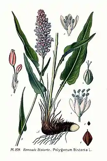 | Гірчак зміїний (Persicaria bistorta L.), ботанічна ілюстрація 1891 року | |