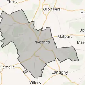 - Розташування муніципалітету Гривен на мапі Франції та сусідні муніципалітети