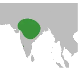 Ендемік Індії. Мешкає у тропічних широколистяних лісах.