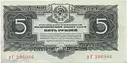 Купюра 5 карбованців Держбанку СРСР, 1934, до арешту Наркомфіна Г. Гринька