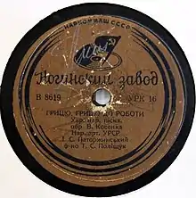 У 1939 році в СРСР було видано грамплатівку «Грицю, Грицю, до роботи» у виконанні Івана Паторжинського, разом із іншою українською народною піснею «Ой, кум до куми».[11] 24 серпня 1946 року, Іван Паторжинський перебуваючи у Канаді, на запрошення «Товариства канадських українців», разом із Зоєю Гайдай дав концерт під відкритим небом у парку Онтаріо-Плейс для 25 тисяч глядачів, де серед інших виконав пісню «Грицю, Грицю, до роботи». Згодом у лютому 1953 року компанія «Arka Records» випустила платівку з піснями Паторжинського, що вміщувала також цю пісню.[12]
