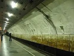 Оздоблення — стелю станції оздоблено гофрованими металевими листами, на ньому розташовуються два ряди люмінесцентних ламп. Колійні стіни оздоблені світло-коричневим мармуром. На глухий торцевій стіні розташовується барельєф.