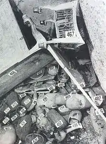 25 грудня 1922 гробницю покинув перший предмет. Розбір артефактів, як згадував Картер, нагадував дитячу гру в якій необхідно було вкрай обережно, поступово встановлюючи підпірки, розбирати завали. Для аналізу, фотографування, також в якості тимчасової реставраційної майстерні, використовувалася сусідня порожня гробниця Сеті II, яка перебувала трохи осторонь від туристичних маршрутів[69]. Тендітні предмети, що розпадалися від дотику попередньо зміцнювалися парафіном і целулоїдом. Намиста з зотлілими нитками нанизували на нову основу. Розбір передньої кімнати зайняв приблизно 7 тижнів. Найскладнішою частиною був винос колісниць, які довелося демонтувати, частково розпиляти й зібрати знову. В один із днів небо затягло хмарами. Сильна злива, які часом трапляються в цій місцевості, могла завдати непоправної шкоди, сховатися від неї не було змоги. Однак вченим пощастило: пройшов легкий дощ[70].