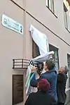 - За написом на меморіальній дошці.