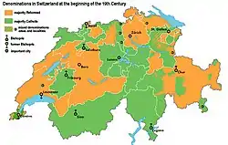 ![]() Прихильники конфедерації «Зондербунд» Нейтральні кантони Прихильники конфедерації «Зондербунд» Нейтральні кантони | |||||||