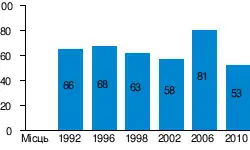 - 1996 Сенат: 29 місць (весь Сенат обраний, тільки одна третина в наступних виборах)