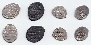 Після Грозного і його сина Федора Івановича карбування монет, яке було менш вигідним через більшу витрату праці заради цього, особливо двох менших номіналів часто припинялася на довгі роки, тоді як випуск копійок не зупинявся ні за одного правителя. Однак, аж до початку XVIII ст. народ і державні установи визнавали тільки старовинний московський рахунок на дєньгу, ніколи не згадуючи копійку-новгородку як лічильну величину. За гроші йшов все той же рахунковий алтин за 6 дєньгах (тобто, за 3 копійки); 33 алтини і 2 дєньги складали рахунковий двухсотдєнеєжний рубль.
