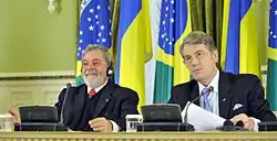 Ющенко і да Сілва на спільній прес-конференції - Парламент Швейцарії обрав президента на 2010 рік. Ним стала Доріс Лойтхард[7]