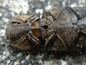 У жуків-коваликів передньогруди мають посередині довгий клиноподібний відросток, що заходить у заглиблення на середньогрудях. А вони відокремлені від передньогрудей підвищеним кантом. Інколи жук, перевернутий на спину, не в змозі повернутися у номральне положення. Тоді він вигинає передньогруди так, щоби тіло спиралося на передньоспинку й задню частину надкрил. При цьому відросток виходить з ямки середньогрудей і впирається у кант. Після цього ковалик різко згинає передньогруди на черевний бік. Відросток з силою зіскакує з канта у заглиблення, із силою б'є у основу надкрил, і це підкидає тіло догори. У повітрі жук перевертається і «приземлюється» звичайно ногами донизу[6]. Якщо це не вдалося, він робить ще один перекид.