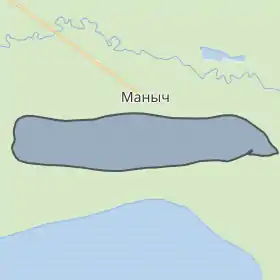 Площа водойми 8,25 км². Озеро має досить правильну форму витягнутого овалу близько 10,5 км в довжину і 1,5 км в ширину. Береги озера місцями підносяться до 3 м, в нього впадає кілька степових балок[2]. На північному березі озера розташоване селище Манич.