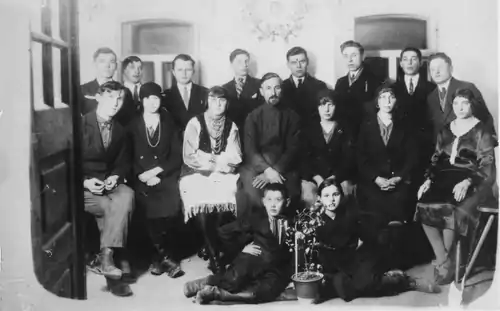 Члени аматорського гуртка: 1. Обжелян Андрій — керівник 2. Мовчанець Михайло — суфлер 3. Копаниця Марко — гример і артист. 4. Гаськевич Леонід 5. Гаськевич Тетяна 6. Стецюк Надія 7. Горячек Пріська 8. Дячук Адам 9. Яремчук Пилип 10. Фурманюк Никанор 11. Борисюк Карпо 12. Кравчук Іван 13. Кисіль Васелина 14. Гаськевич Олена 15. Яськова Галина 16. Музичук Настя 17. Яковлюк Федір 18. Володько Леонід 19. Кисіль Василь 20. Михальчук Йосип 21. Серветник Олекса 22. Баранчук Микита 23. Музичук Арес