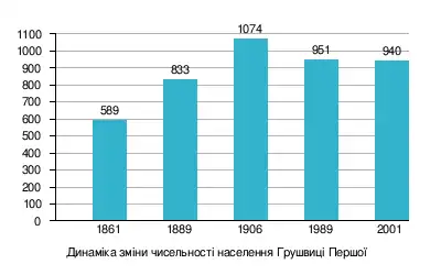 За даними 1889 року село Грушвиця, волості Глинсько-Чешскої, нараховувало 106 дворів, 833 мешканців, серед яких 98 римо-католиків.[13] Крім того, проживало 995 чехів, які мали римо-католицьку каплицю. У селі діяла церква Покрови Пресвятої Богородиці. Її побудували в 1766 році, і в ній зберігалися копії метричних книг з 1779 року.