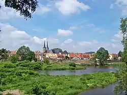 Серед визначних пам'яток міста — будівля ратуші, побудована у 1442, школа, заснована у 1550 курфюрстом Моріцем та королівський замок.