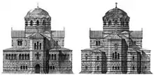 - Володимирський собор у Херсонесі, поблизу Севастополя (1858; проєкт цього храму приніс художнику професорське звання в 1860);