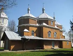 На південній околиці села стоїть дерев'яна церква Преображення Господнього, яка до 1990-х років належала православній громаді. Існуюча триверха церква збудована у 1777 р. на місці давнішої. На це вказує різьблений напис на надпоріжнику дверей до бабинця (переклад з «Інскрипції на дерев'яних церквах» В.Слободян): «Збудований дім Божий за священого ієрея Івана року Божого 1777 місяця травня 23». Під час одного з ремонтів добудована захристія з північної сторони вівтаря і частково нави, та присінок з заходу бабинця. Триярусний різьблений і золочений іконостас походить з XIX ст. Стіни церкви вкриває олійний живопис XX ст. Цікаво, що на південь від святині, одна біля одної, стоять дві дерев'яні дзвіниці: ліворуч — приземиста, стара, ще з 1777 року, частково пошкоджена пожежею 1980 року, праворуч — нова двоярусна стовпова з 1990 року, розміром 4,8×4,8 м, збудована майстром Іваном Рубахою з Кліцка. Дерев'яна церква доволі великих розмірів (20,0 х 10,7 м), має такі деталі, як трафаретні орнаменти на карнизах білого кольору. Бані храму незвично приплюснуті, а ось ліхтарики над ними навпаки витягнуті вгору, що додає церкві завершеного силуету. Церква належить громаді УГКЦ.