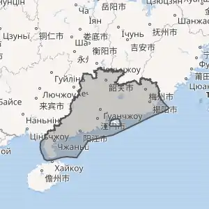 ![]() Провінція Ґуандун (червоним) на мапі Китаю. | ||||