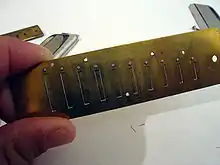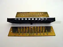 Звукова пластина є групою декількох гребінців на одній основі. Гребінці, зазвичай, виготовляють із латуні, але, також, використовують і сталь, алюміній або пластмаси. Окремі язички, зазвичай, кріпляться до пластини, однак, вони також можуть бути приварені або прикручені. Гребінці, закріплені всередині (в повітряній камері гребінця) пластини відповідають на видих, а ззовні — на вдих.