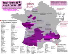 Вони жили на Атлантичному узбережжі в Ла-Рошель, після скасуванні Нантського едикту Людовіком XIV . Багато гугенотів втекло з країни, в 1689 році вони заснували в Північній Америці місто Нью-Рошель. Також гугеноти розповсюдилися по провінції Нормандії і Пуату. На півдні, в таких містах як Кастр, Монтобан, Монпельє і Німа були гугенотські фортеці. Крім того, багато протестантських сіл знаходилися в гірському регіоні Севенни.