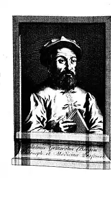 Портрет Гульєльмо Гратароло з книги Gallizioli, Giovanni Battista (1788). Della vita degli studi e degli scritti di Gulielmo Grataroli filosofo e medico. In Bergamo: dalla Stamperia Locatelli.