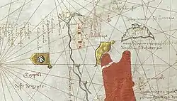 На карті-портолані від 1380 року на північ від Чорного моря, поблизу витоку Дніпра є напис «Rossia» (Русь).[3].