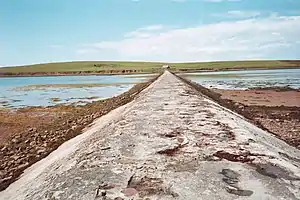 Острів розташований у затоці Скапа-Флоу і з'єднаний із сусіднім островом Буррей доріжкою, побудованою в 1941 році, щоб зупинити прохід невеликих надводних кораблів як частина оборони стріли[1] а звідти на материк Оркнейські через бар'єри Черчілля.[2]