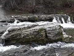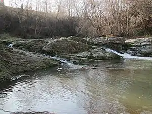 Загальна висота перепаду води становить 1,5 м. Водоспад утворився в місці, де річка перетинає скельний масив, утворений стійкими до ерозії пісковиками.