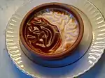 | Крем-брюле | Варять до загусання молоко (вершки), яйця і цукор, роблять карамелізовану скоринку. | Основа не містить круп (заварний крем), не додають молочні пінки і горіхи. | ![]() |